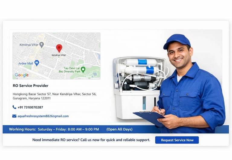 .Welcome to RO Service Provider. If you are looking for trusted and professional RO repair, installation, or maintenance services in Gurugram, feel free to contact us anytime. Our team is available 7 days a week to assist you.